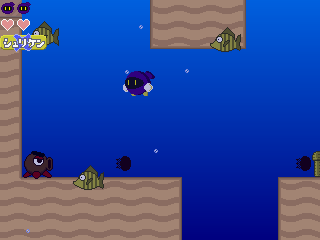 シュリケンは、↑または↓キーを押すことで、上や下に投げることができます。